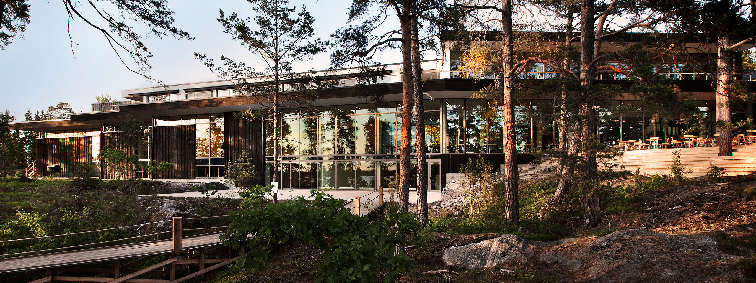 Artipelag ligger vackert beläget på Hålludden, Artipelagstigen 1, på Värmdö i Stockholms skärgård.