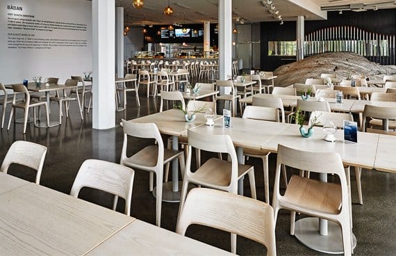 The beautiful Bådan Café & Pâtisserie is renowned for its massive, timeworn rock and associated light artwork Nature’s Force, created by Siri Seger. The large windows give a massive amount of natural light and the view of Baggensfjärden is stunning and tranquil.