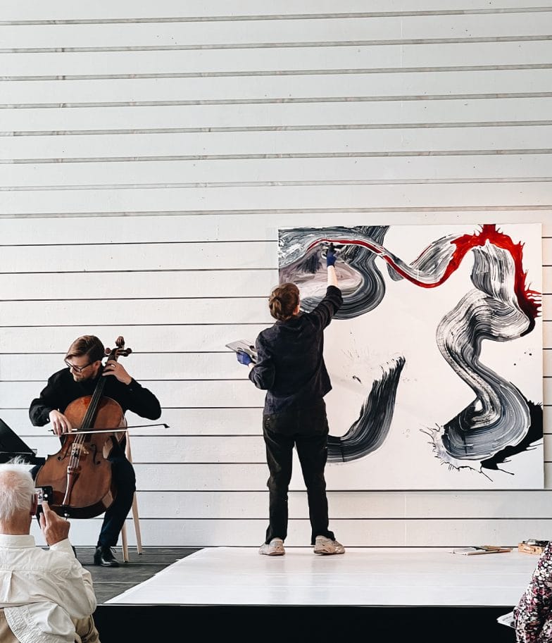 In June, artist Dina Isæus-Daggfeldt participated in Artipelag's concert series, Crossroads, where she painted to the music of composer Jacob Mühlrad. From October 22 to November 24, the completed work will be on display at Artipelag.
