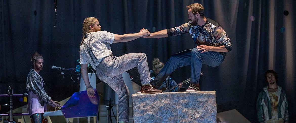 I Underart medverkar sju cirkusartister och musiker som blandar balansakter, akrobatik och intensiva fikapauser med specialskriven livemusik.