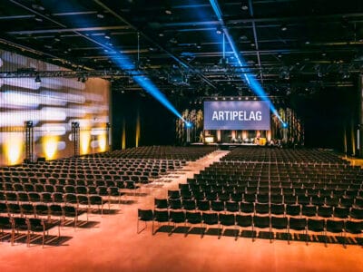 Vår Artbox är helt unik – en 1200 kvm stor eventhall där varje detalj är förberedd för stora möten, mässor eller galamiddagar. Eller vad sägs om ett artistrum med 11 loger, möjlighet att projicera möblering direkt på golvet eller totalt 55 toaletter för gästerna?