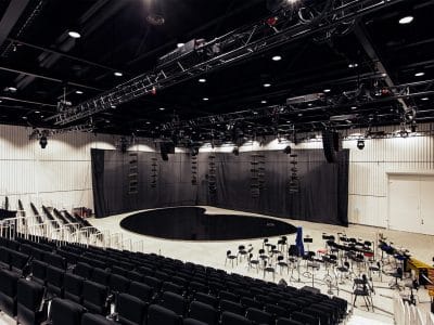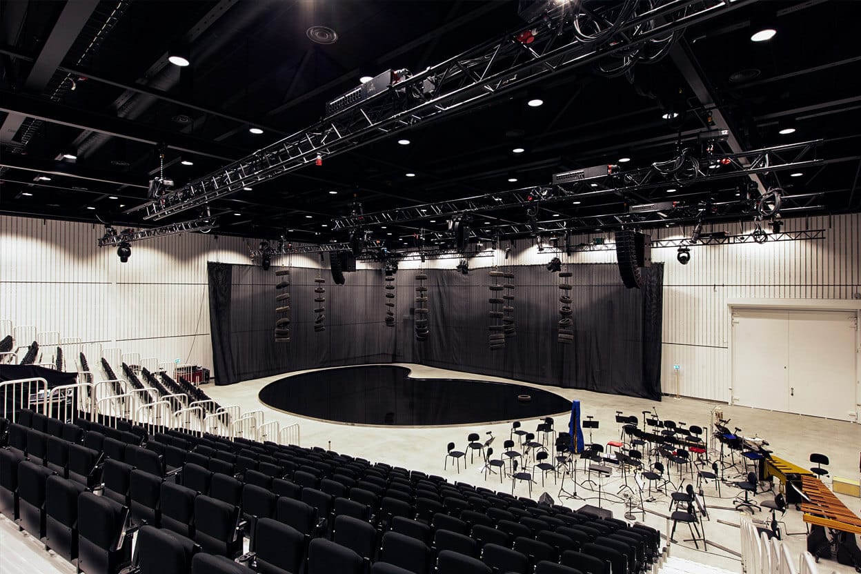 - Ljudsystem bestående av PA från L-ACOUSTICS – tillräckligt för att ge ett starkt och jämnt ljudtryck över hela lokalen för konserter, event och konferenser.